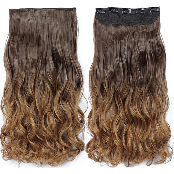 Amazon Com 17 Inches 120grams Thick One Piece Half Head Wavy Curly Ombre Clip In Hair Extensions Col Chocolate Brown Dark Blonde Dl Beauty Personal Care