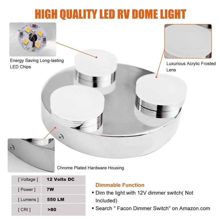 Facon 8 Inch Led Ceiling Dome Light Fixture Decorative Rv Flush Mount Lamp 3 Round Led Lights With Acrylic Lens 12v Dc Interior Light For Rv Motorhome Trailer Camper Walmart Com